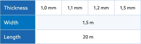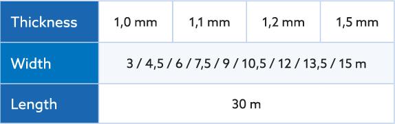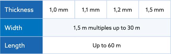 The Sopraguard Top EPDM membrane offers a variety of thicknesses between 1,0 and 1,5 mm, as well as a range of widths, from 1,5 m wide rolls to large panels up to 30 m wide and 60 m long.
