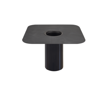 Prefabricated EPDM piece measuring 36×36 cm attached to a high-density polyethylene tube, used for finishing drains.