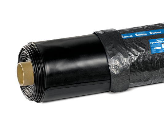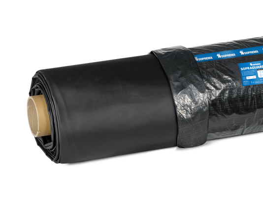 Self-adhesive strip for splicing EPDM membranes. Sopraguard Primer must be first applied to both membrane surfaces.